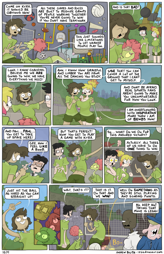 Could it really be that simple? I dunno, I don’t play sports. I make webcomics. 3/3 And many comics were made this week! Well, I had a head start and was full of power after having a bit of a break this month. I even had a tiny bit of extra time to make a… Continue reading 1639